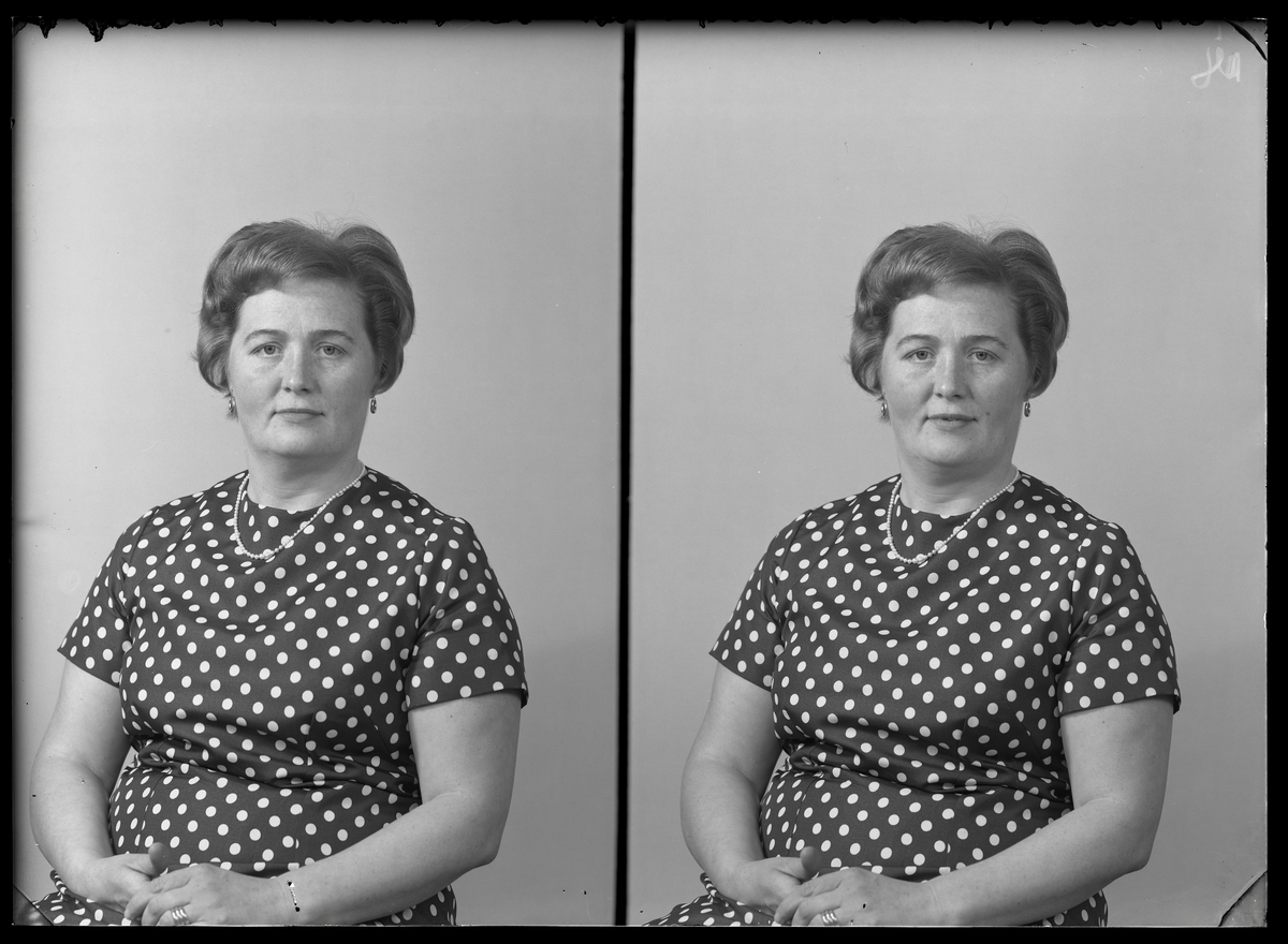 Porträtt, passfoto. Fru Lisa Borg, Oxelby, Kolbäck.