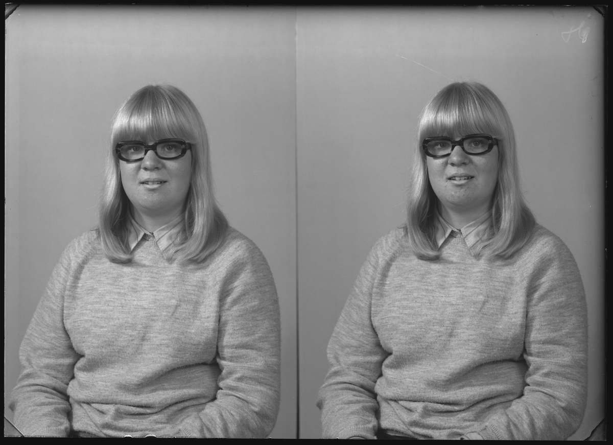 Porträtt, pass. Gerd Karlsson, Mölntorp, Kolbäck. Ur Gustaf Åhmans samling.