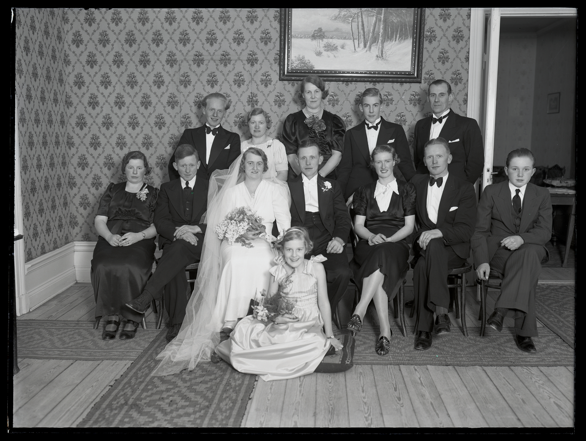 Grupporträtt, bröllop. Allan Jansson, Oppvreta, Dingtuna.