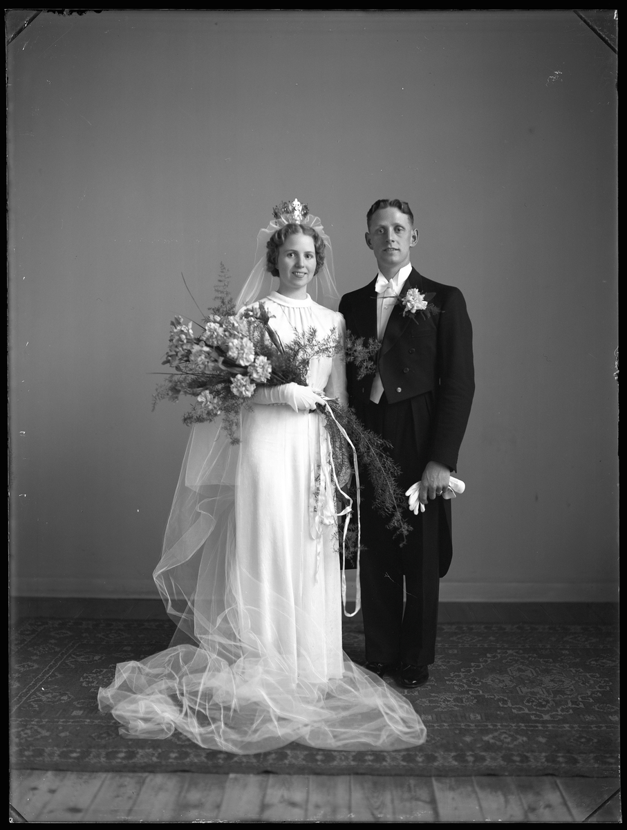Porträtt, brudpar. Josef Östergren, Östergatan 14, Surahammar.