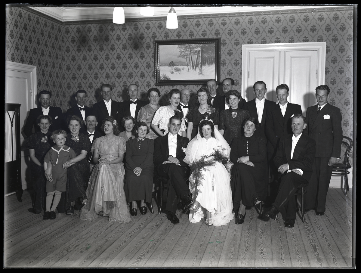 Grupporträtt, bröllop. Arvid Avelin, Herrevadstrand.