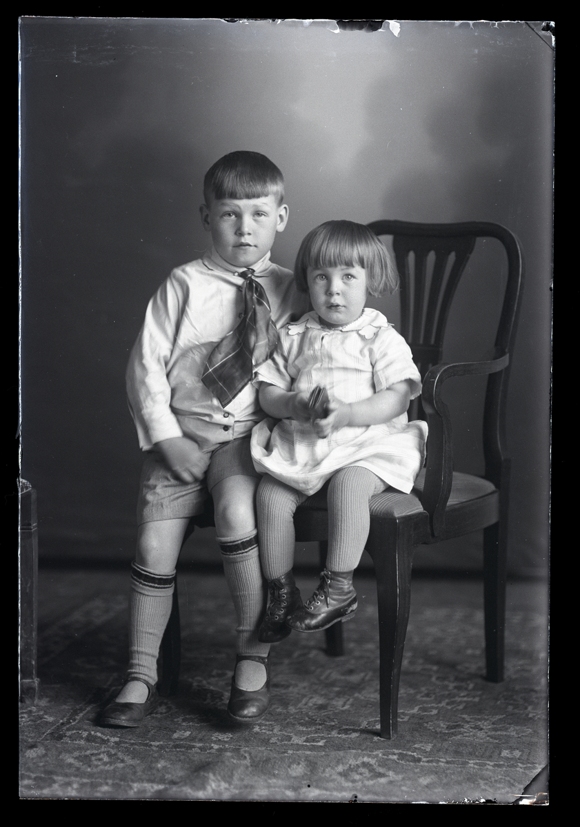 Grupporträtt, två barn. Tyra Gertman, Stensborg, Svedvi, Kolbäck.