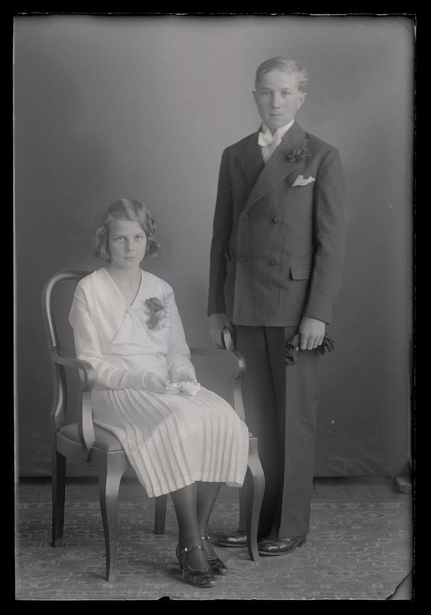 Grupporträtt, läsfoto. Elis och Ellen Becker, Mölntorp.