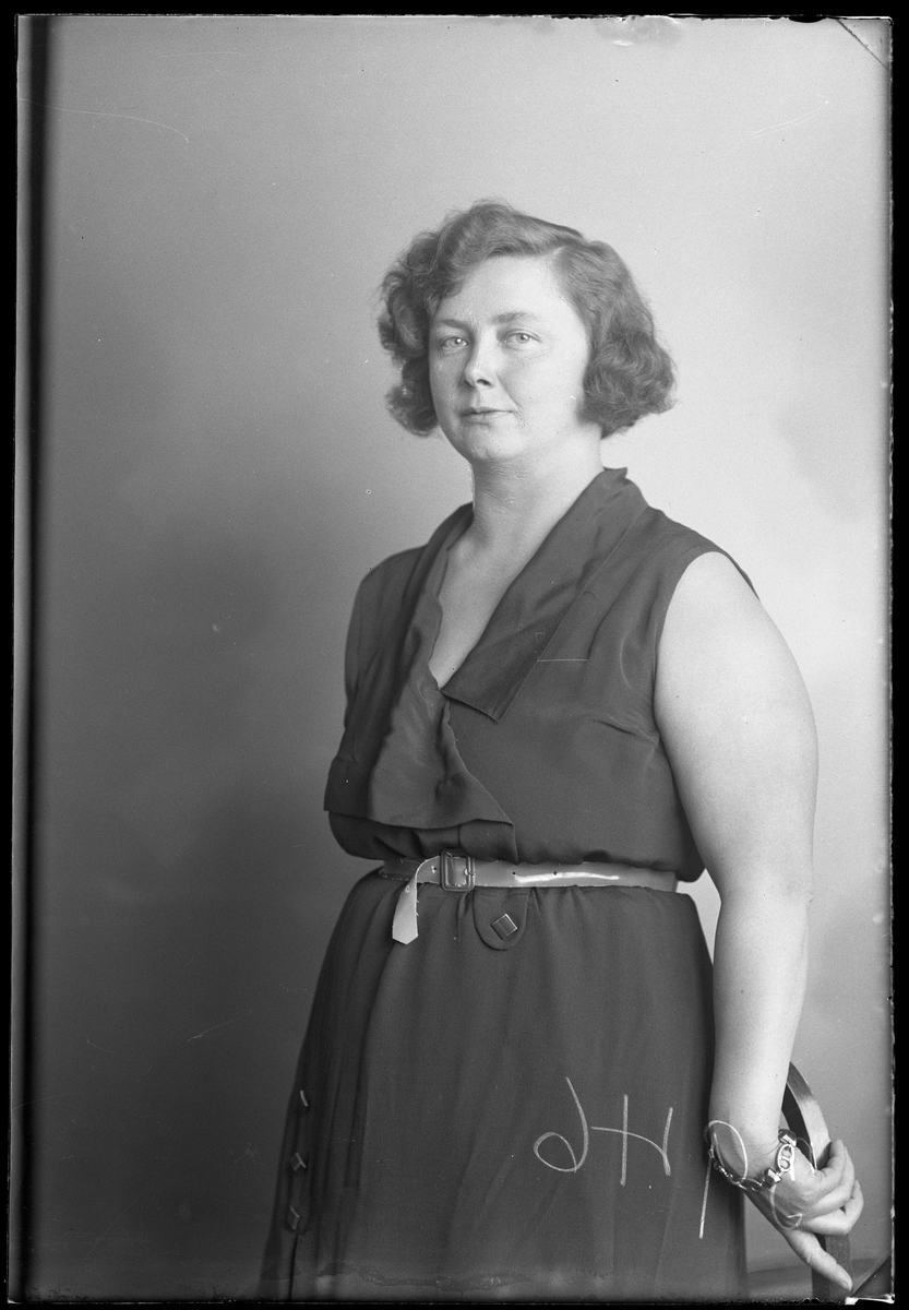 Kvinnoporträtt, körkort. Fru Gelander, Hallstahammar.