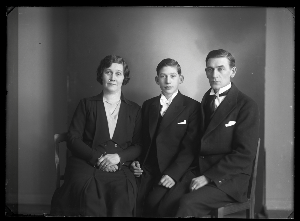Titel: Grupporträtt, tre personer. Broström, Kolbäck. Ur Gustaf Åhmans samling.
