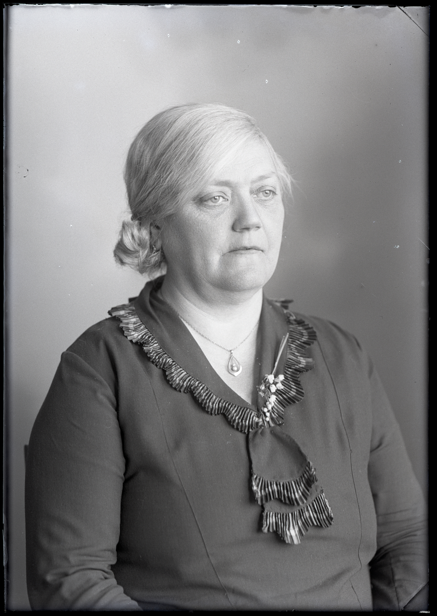 Titel: Kvinnoporträtt. Kate Eriksson, Tomtebo, Hallstahammar. Ur Gustaf Åhmans samling.