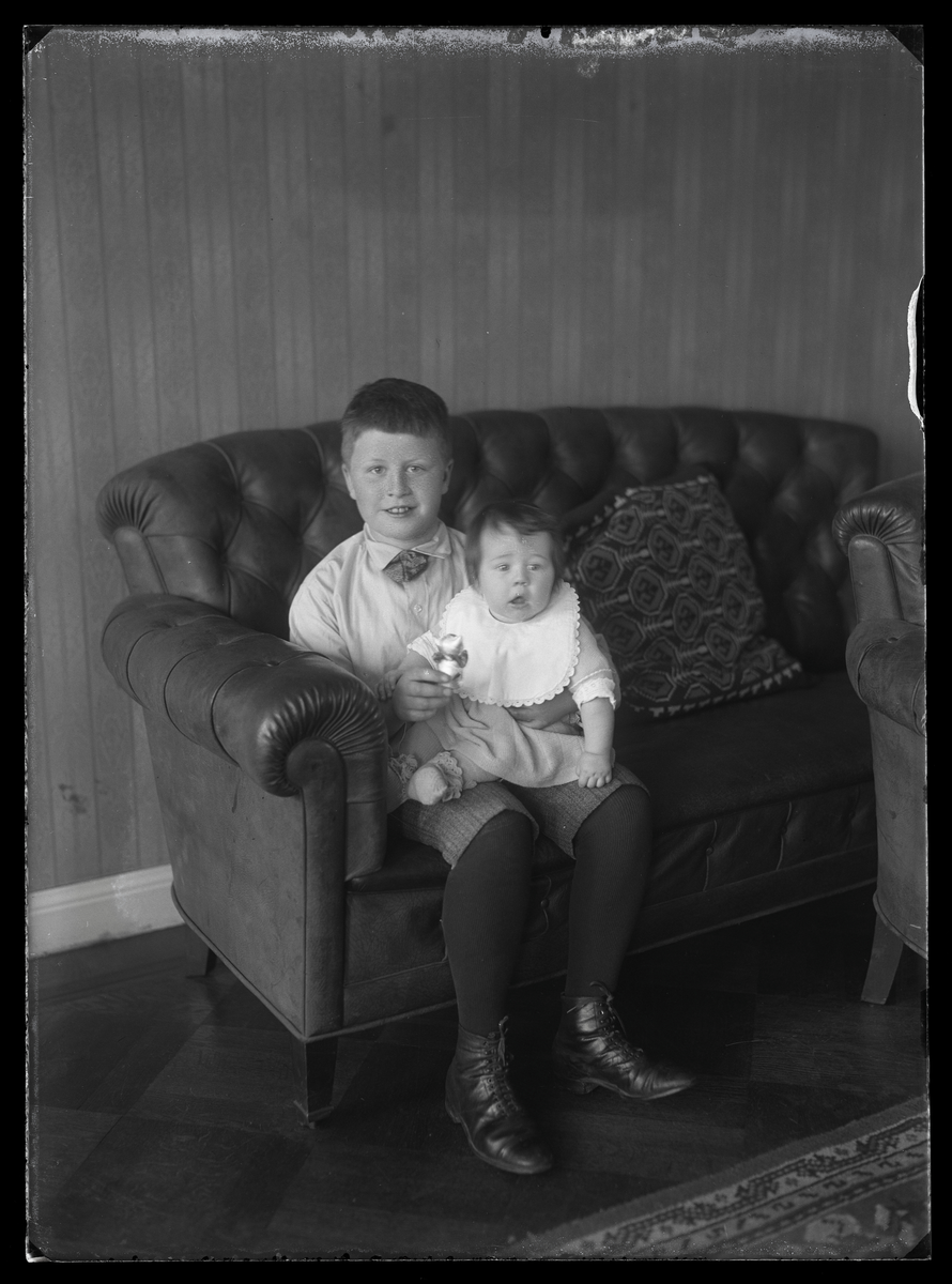 Grupporträtt, två barn. Agronom Andersson, Herrevad, Kolbäck.