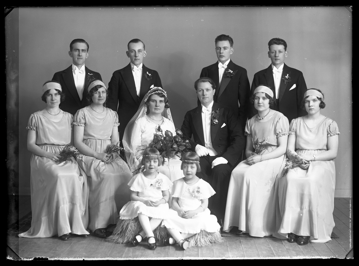 Grupporträtt, bröllop. Nils Eklund, Hallstahammar.