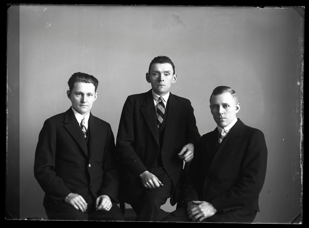 Grupporträtt, tre män. K.F. Kropp, Forsbo nr 2, Hallstahammar.