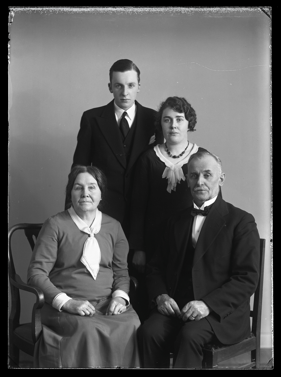 Grupporträtt, fyra personer. Axel Dahlström, Övergården, Hallstahammar.