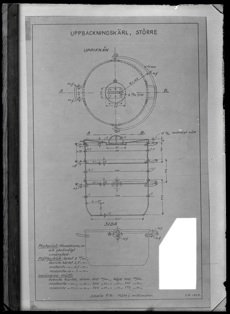 Ritning på uppbackningskärl. Mölntorps Verkstäder.