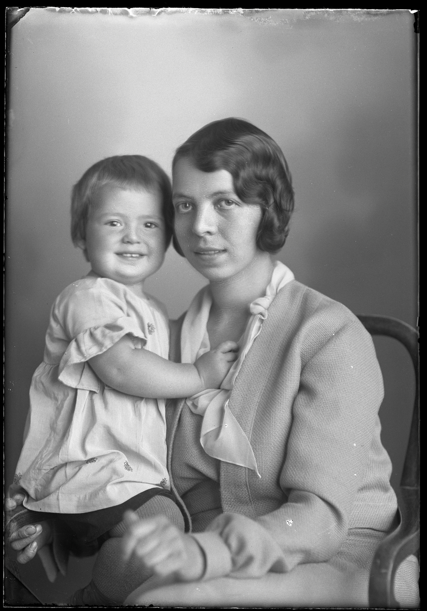 Grupporträtt, kvinna och barn. Fröken Anna Bergman, Sörstafors.