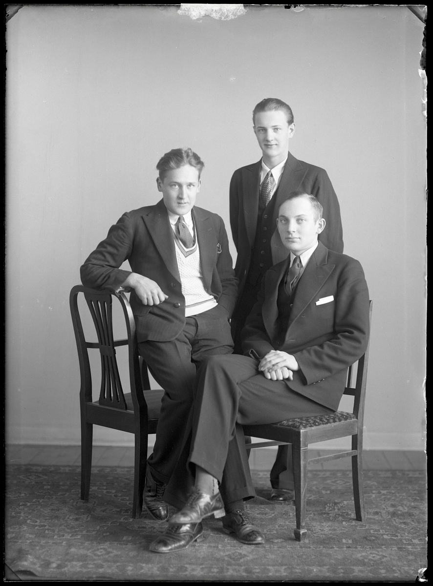 Grupporträtt, tre män. Åke Ekstrand, Kolbäck.