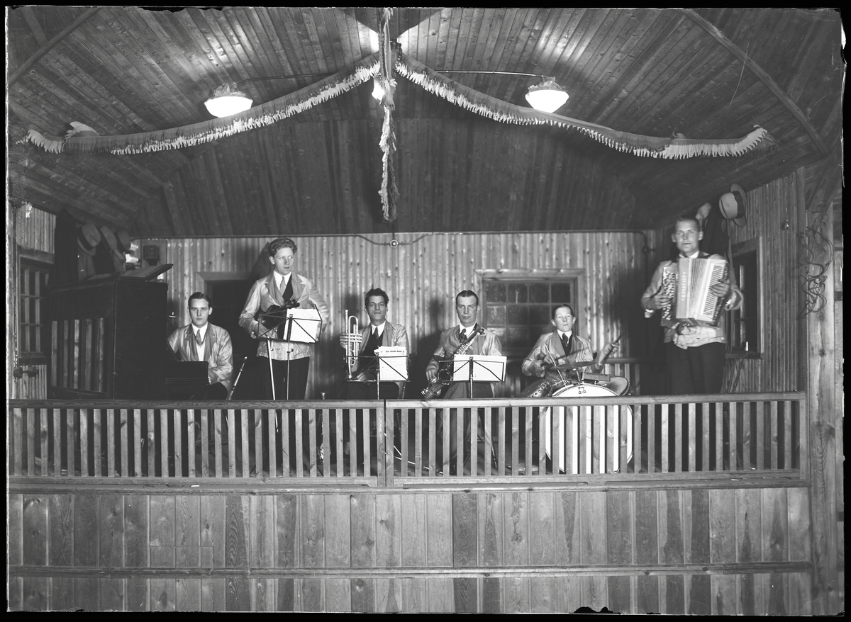 Grupporträtt, musikuppträdande. Folkets Parks Musik, Hallstahammar.