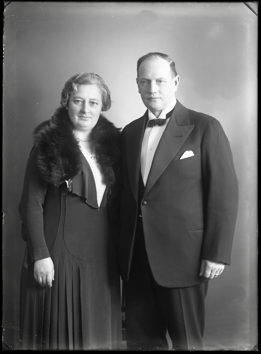 Grupporträtt, man och kvinna. Konduktör Lindvall, Kolbäck.
