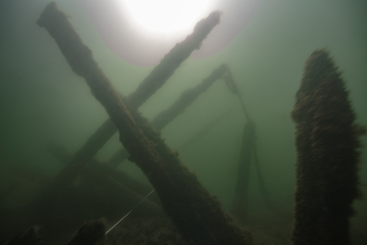 Timren, sannolikt medvetet anlagda i vraket, står i fyra rader. De är krysslagda men med okänd infästning