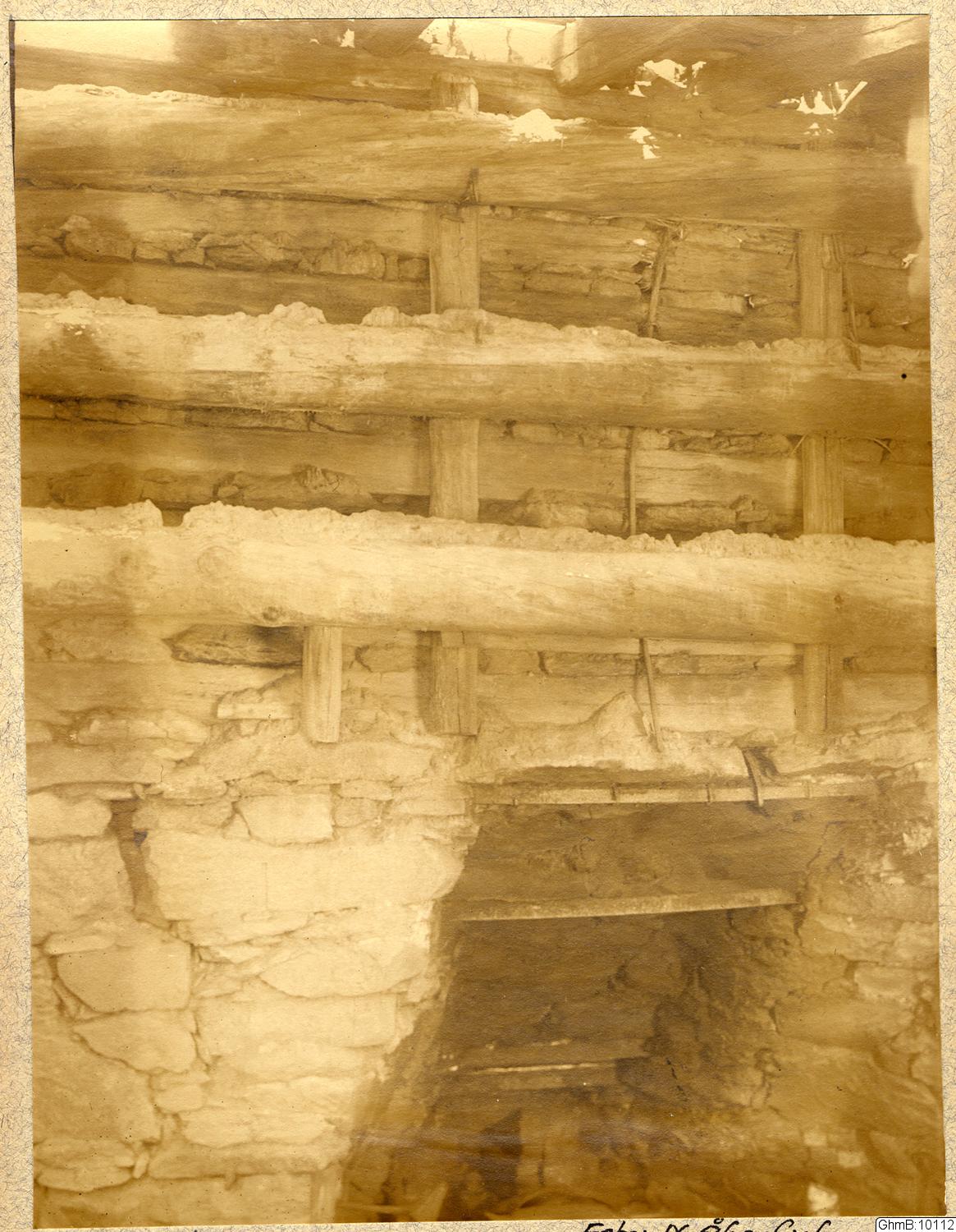Hytte Förstärkt stenmasugn. Pipan över bröstet.