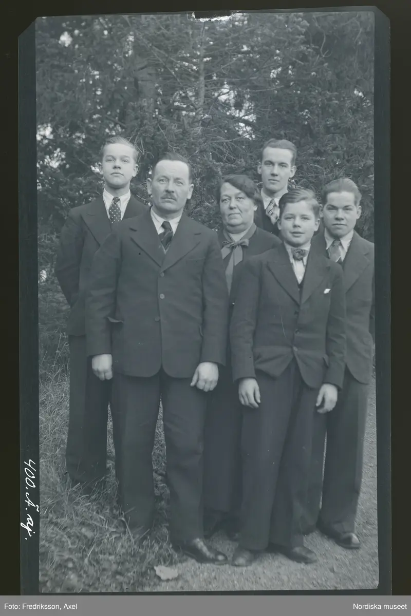 "Amelie o Axel Lövstrand (trädgårdsmästare) Gunnar, Nisse, Olle, och Erik."