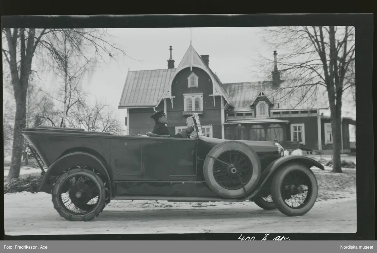 "Svante Hammarbäck med greve von Rosens bil, Väsby. foto 1923."
