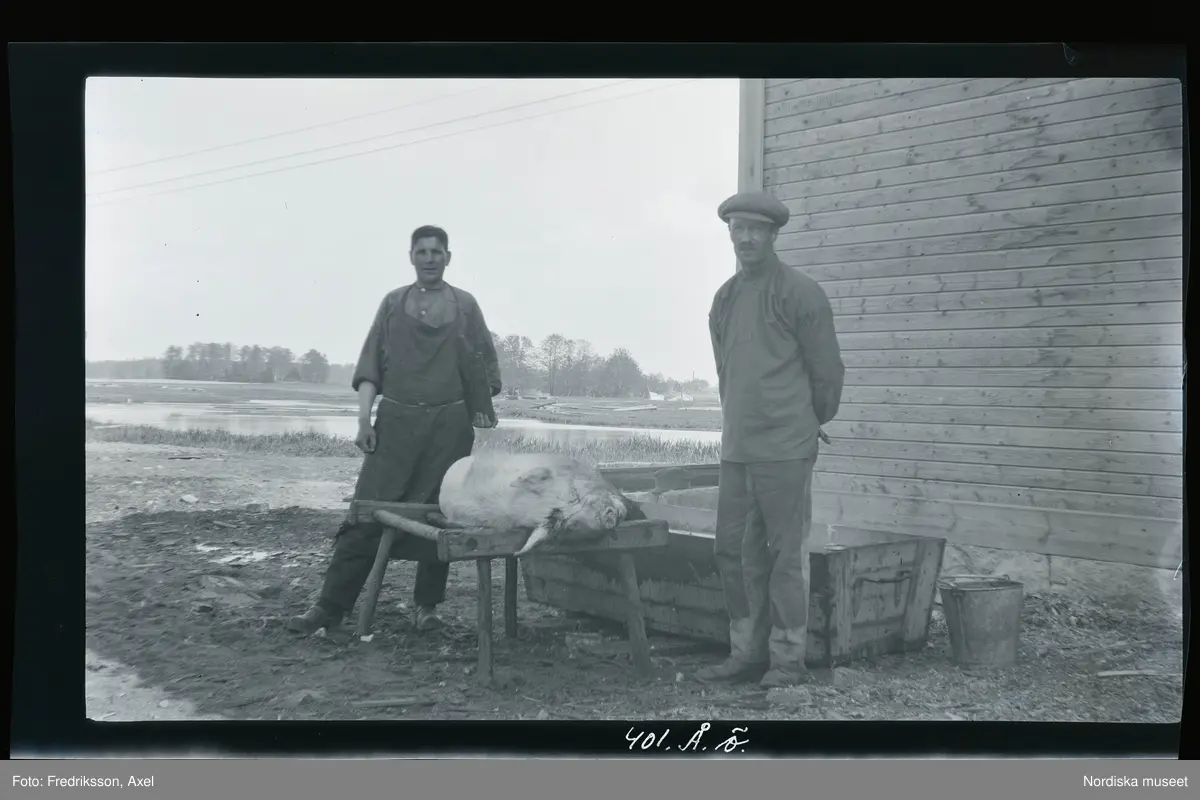 "Emil Larsson, slaktare och Erik Karlsson, Backtorp Fogelstad."