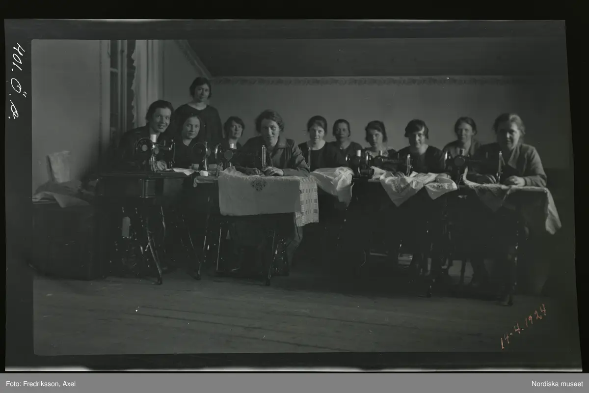 "Maskinbroderingskurs. Längst fram med "vita duken" Lisa vid kraftstation."