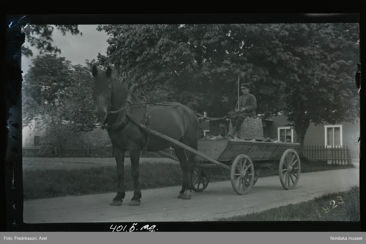 "Vedpojken vid Fogelstad, Johan Karlsson med hästen From."