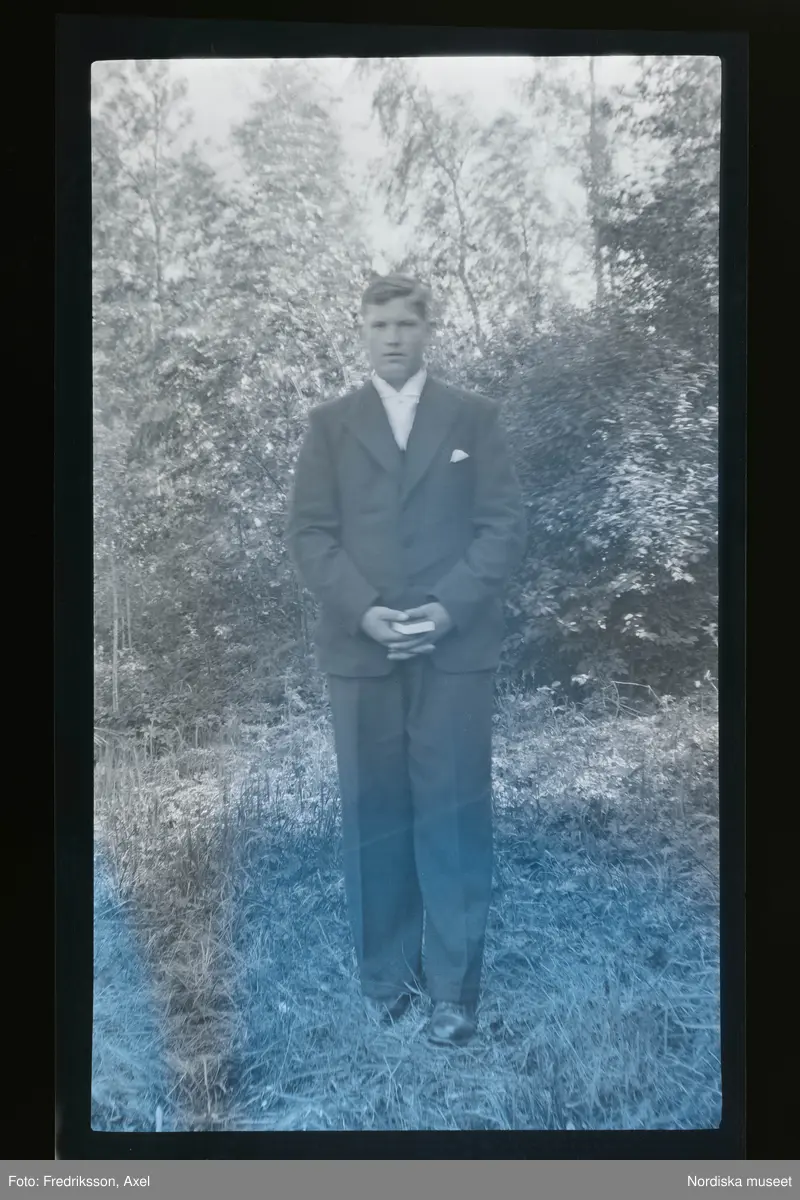 Titel: "Bror till Erik Hellkvist, Fogelstad." Konfirmationsporträtt av en ung man.