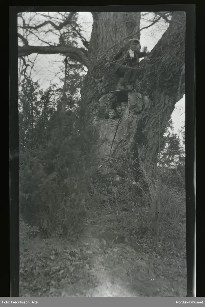 "Inuti en ek vid Dimbo, nära Läppe, Frida, Anna Lisa och Gunnar."