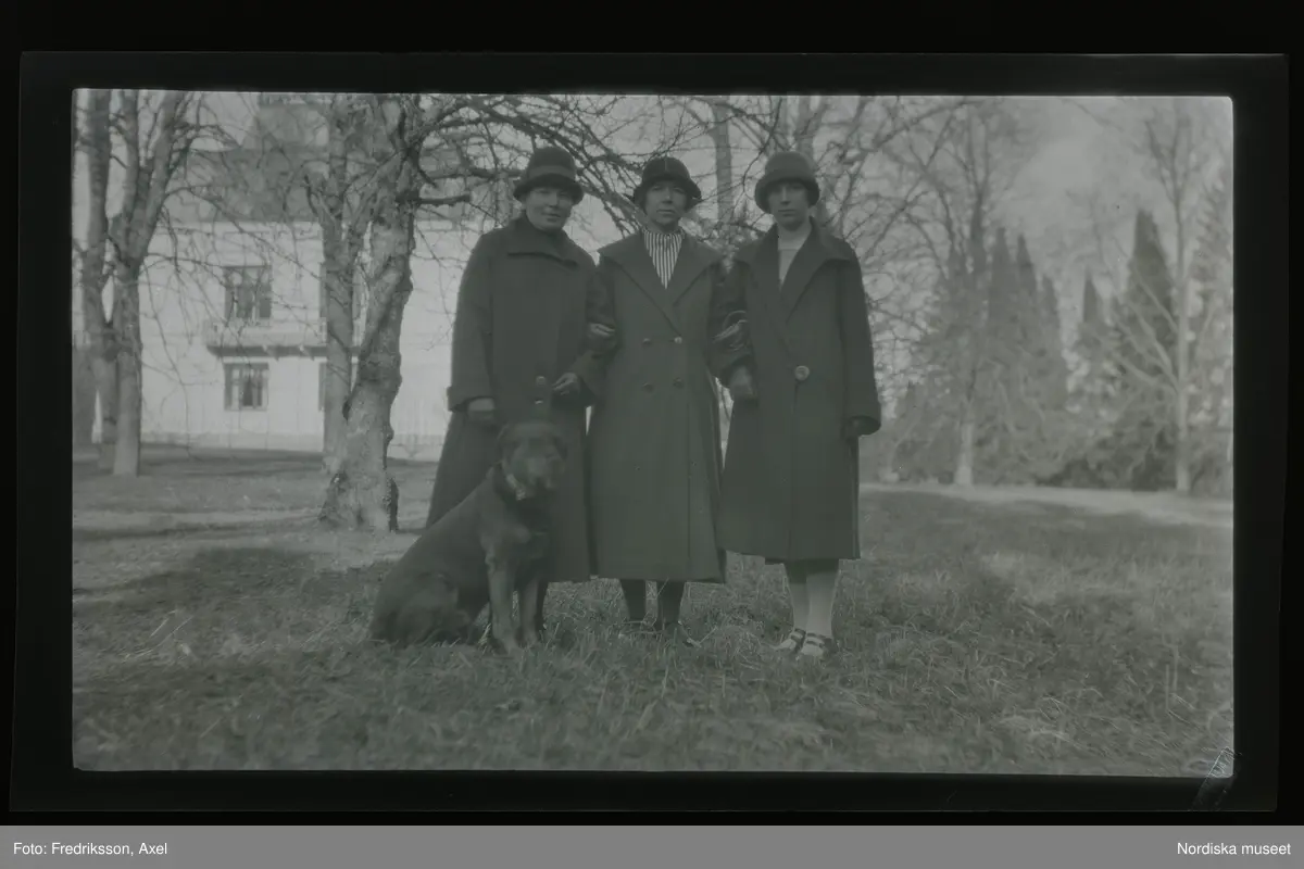"Anna Pettersson husa, Emy Carlsson kokerska, Lydia Andersson husa, Fogelstad."