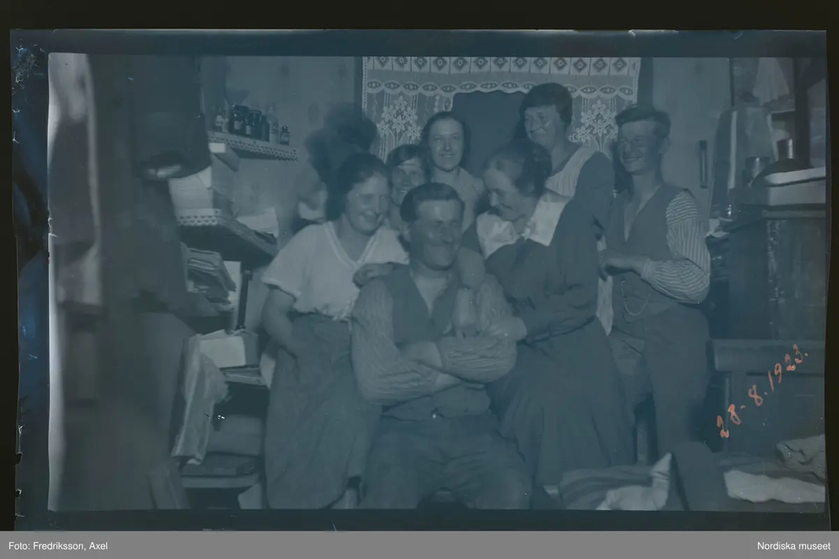 Ett sällskap poserar i ett rum, möjligen Axel Fredrikssons (som sitter längst fram i mitten) arbetsrum.
