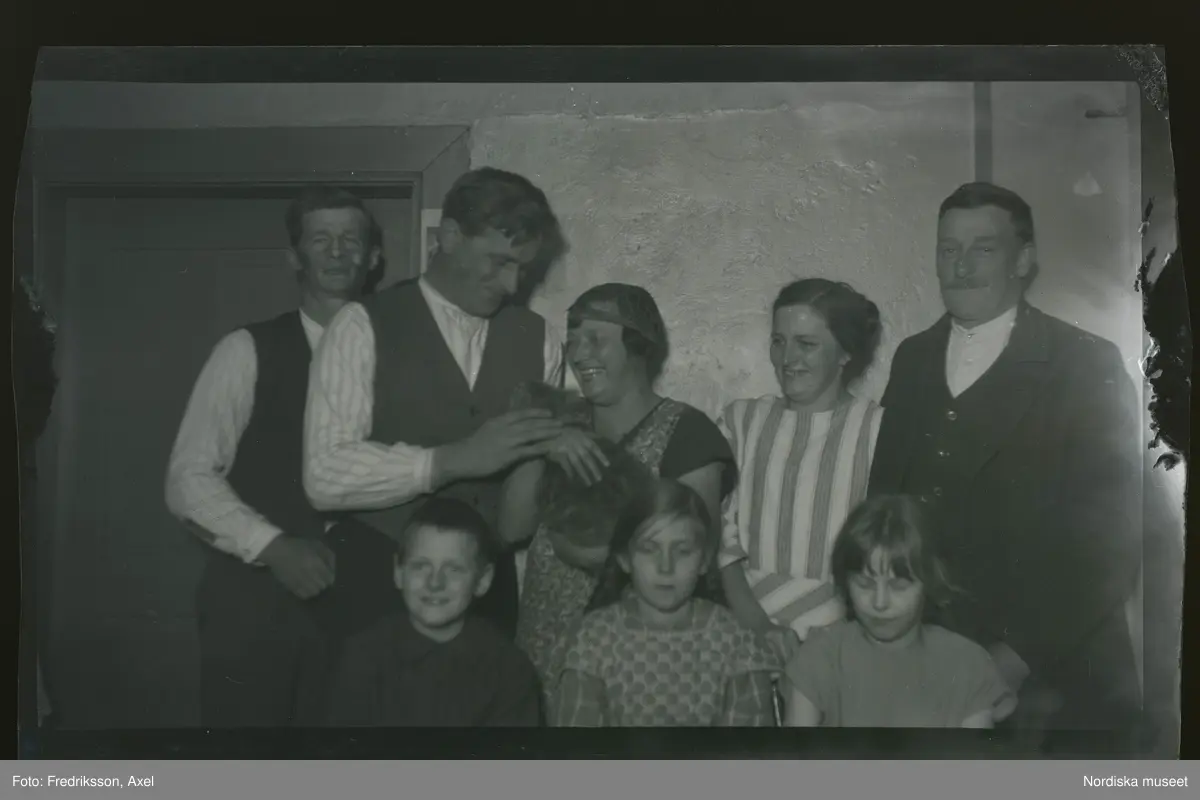 "Vänner i Bie. Tegelbruket, Ivar, Axel, Frida, Astrid och Oskar, Rune, Elsa Andersson, Anna-Lisa."