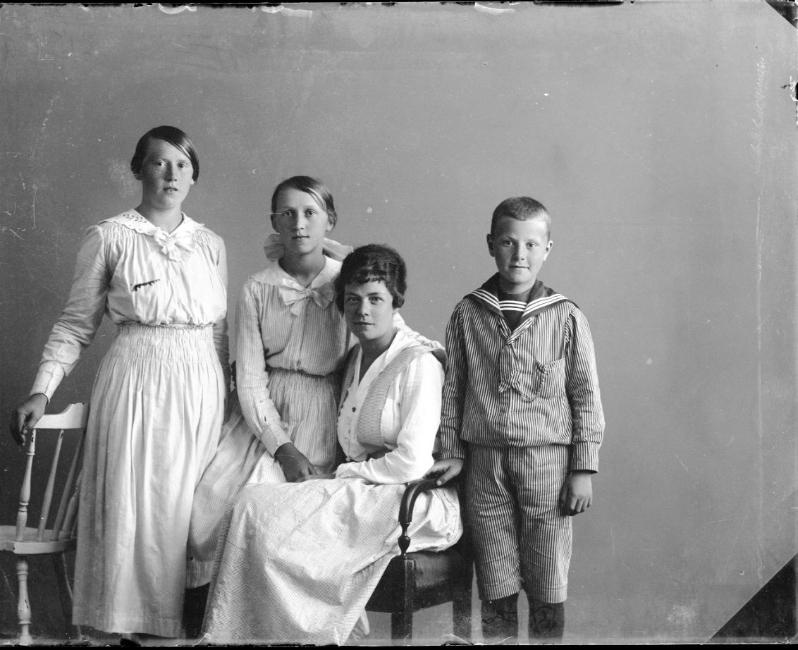 Porträtt av en kvinna med två flickor och en pojke.