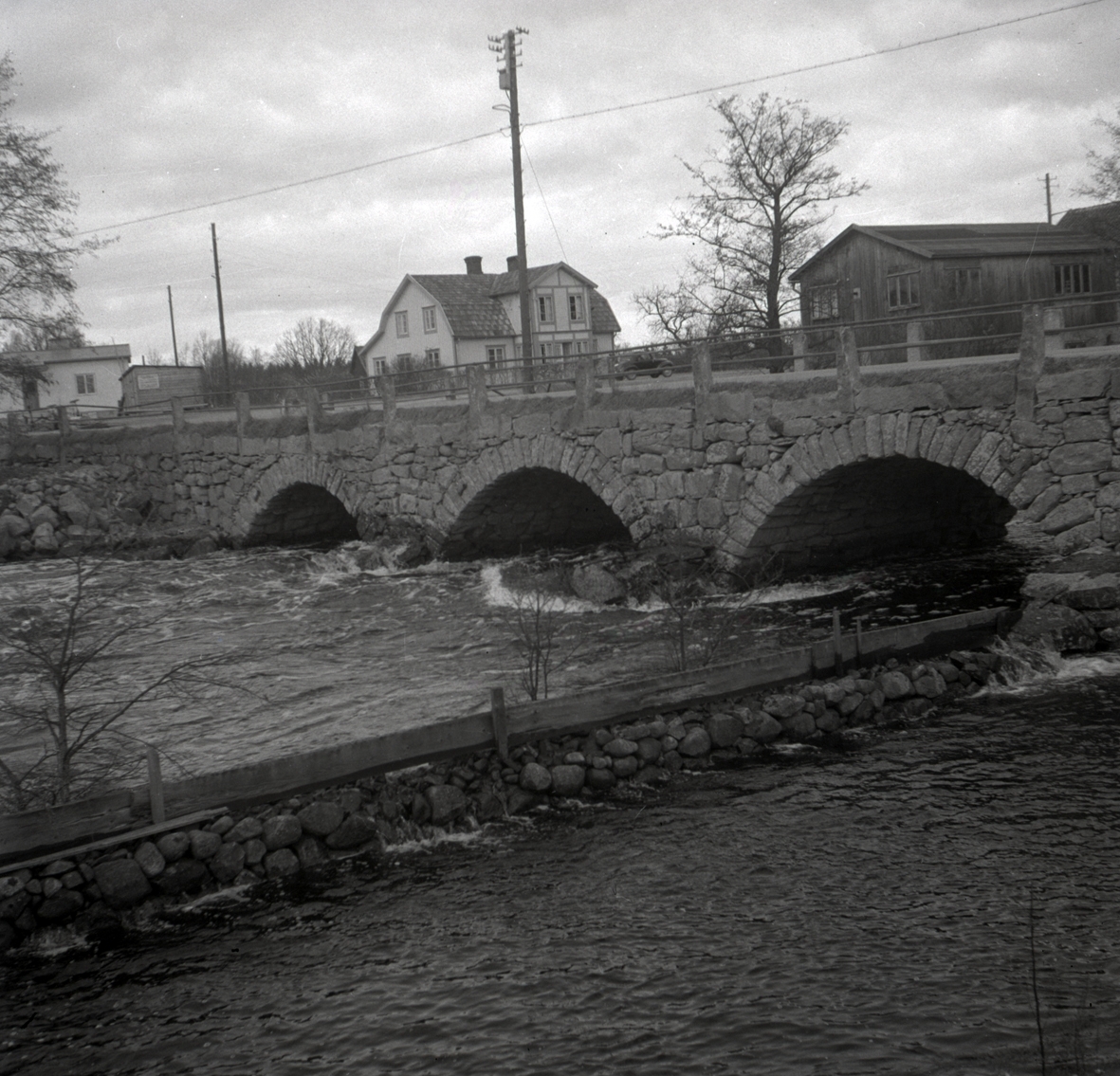 Översvämning i Broholm. Stenvalvbro med tre valv.