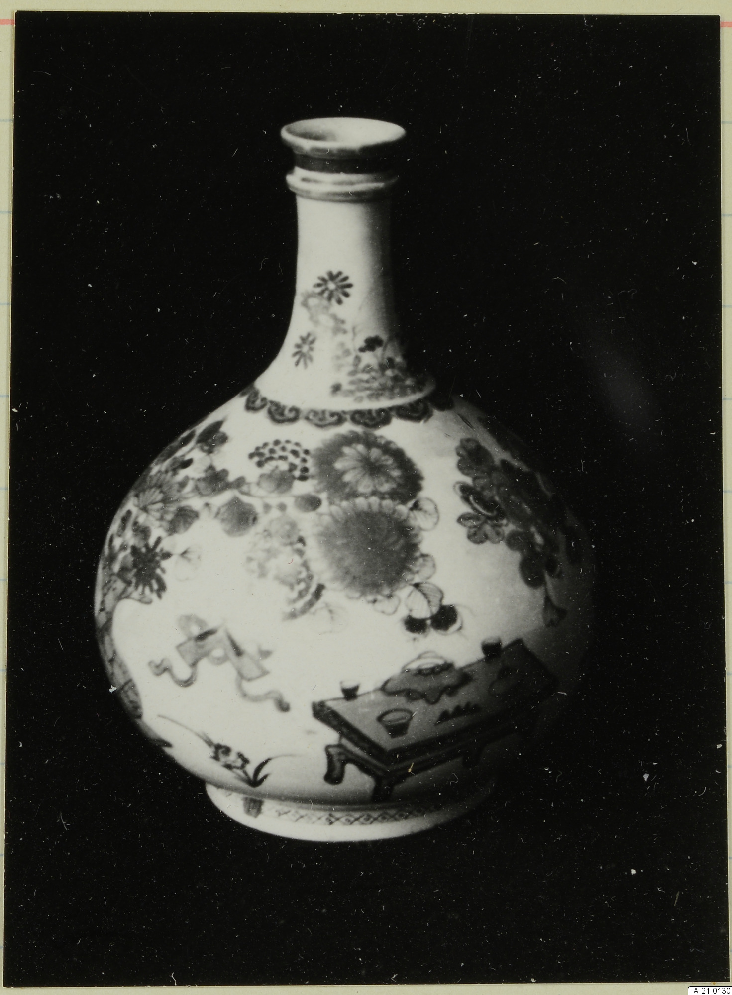 Flaska, porslin, Imari, blått-rött-guld.