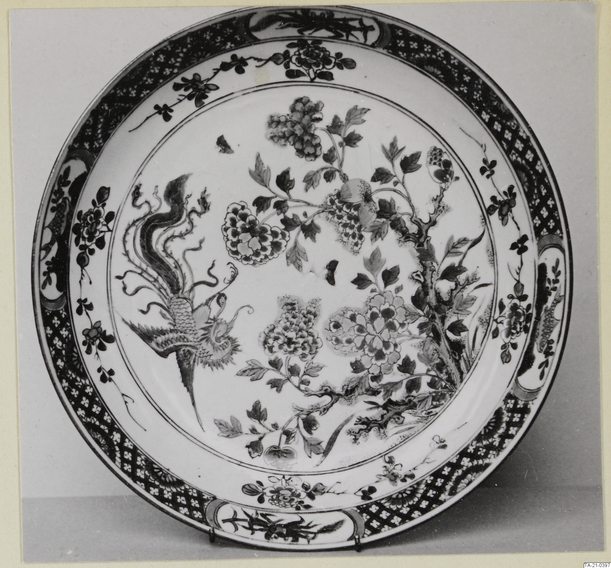 Fat av porslin, Kina. Fenixfågel, blommor.