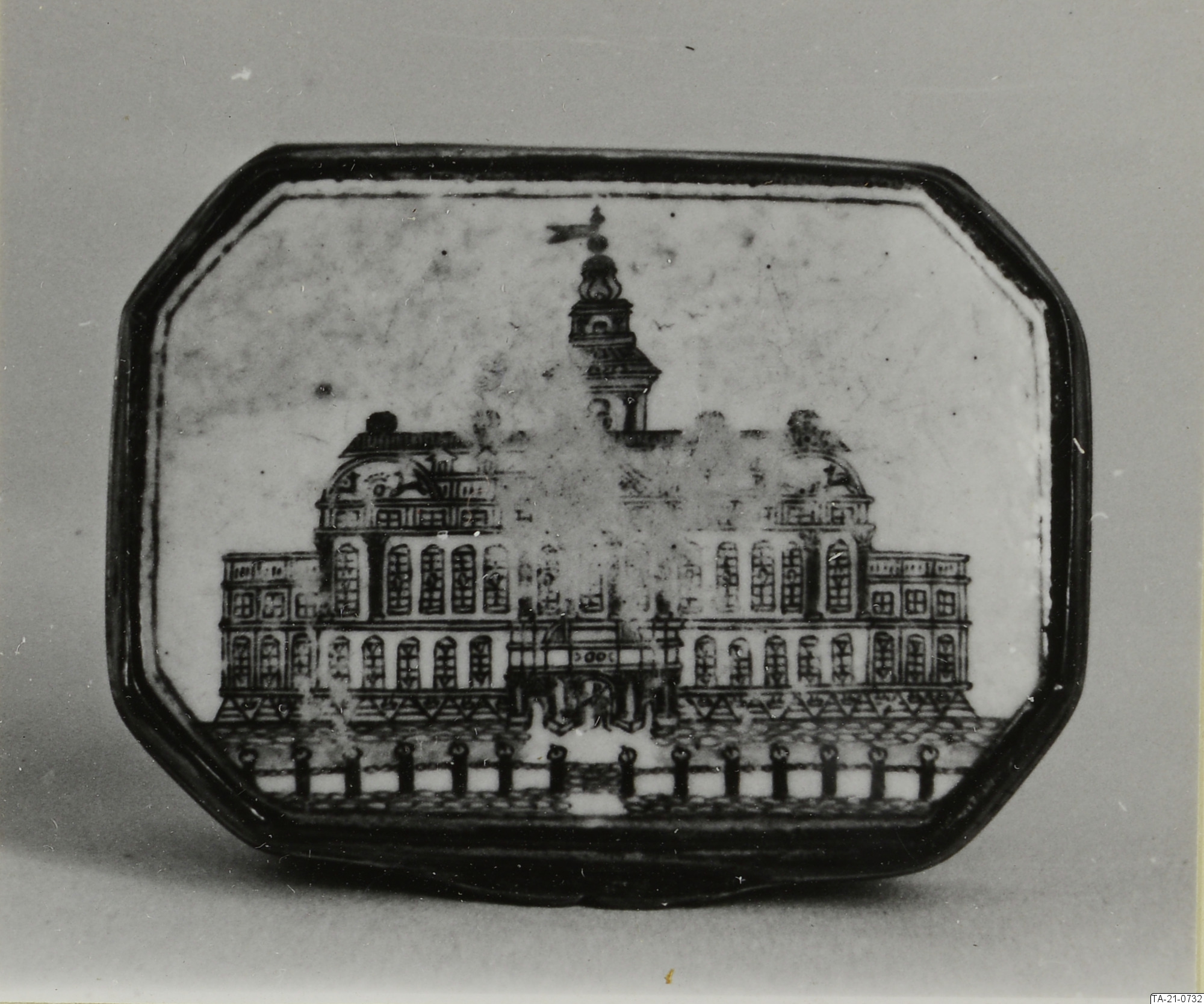 Dosa, rektangulär, Häradshövding Carl Dahlgren, porslin, 1700-tal, Kina, slott, byggnad.