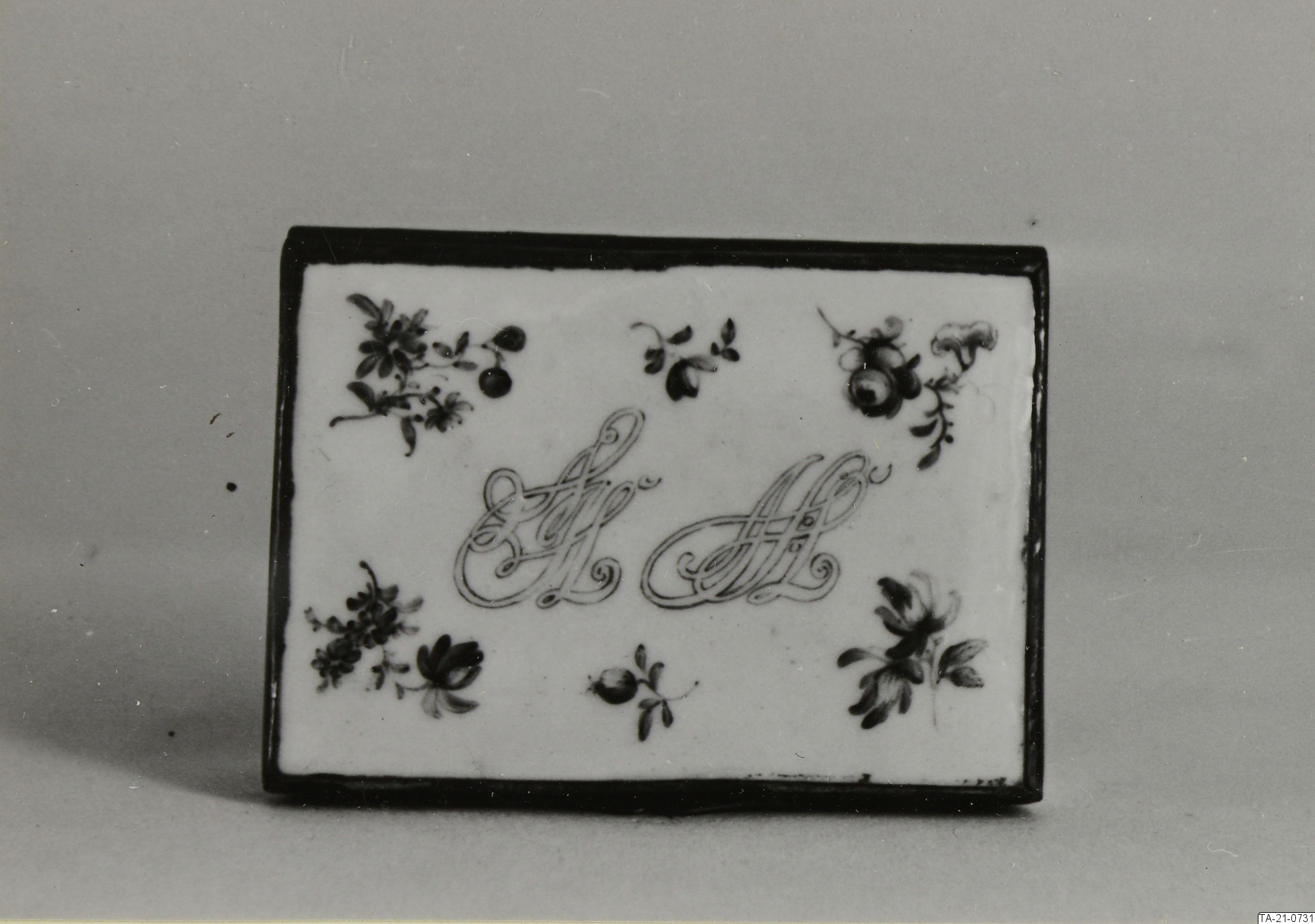 Dosa, porslin, Kina, 1700-tal, Häradshövding, Carl Dahlgren, locket två oläsliga monogram.