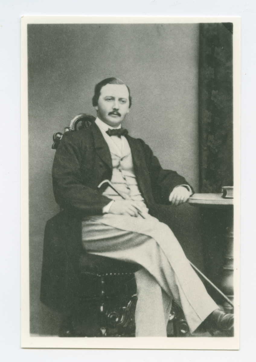 Porträtt på Hjalmar, August, Jönköping. Född 1 september år 1830 på Karstorp i Slaka i Öggestorp socken. Död 8 februari år 1905 i Jönköping.
