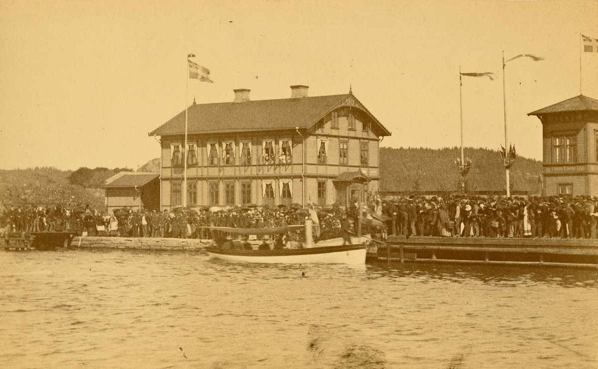 En folkfylld hamn.