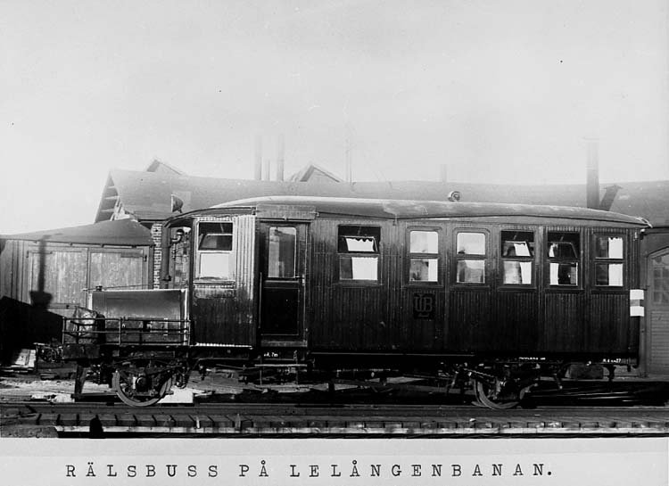 Medföljande text: "Rälsbuss på Lelångenbanan.".