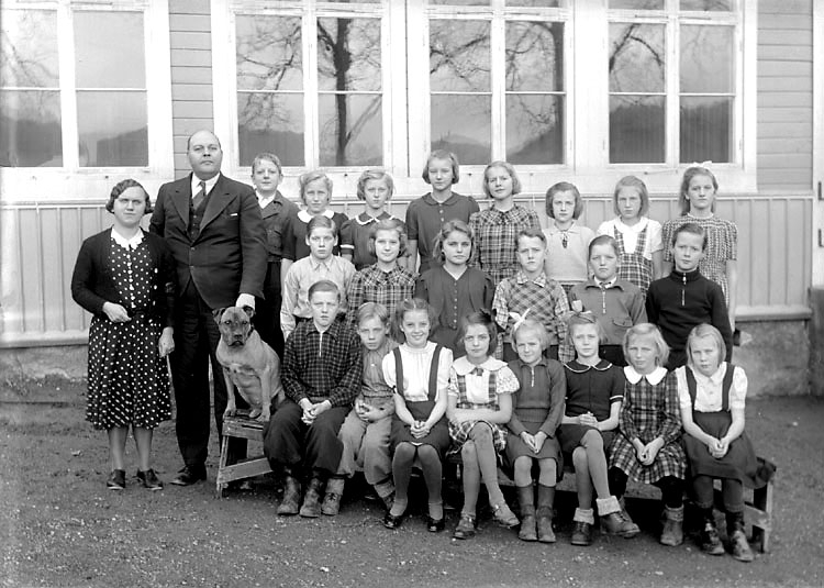 Enligt senare noteringar: "Folkskolläraren Karl Josefsson med skolklass, samt hustru och boxer. Josefsson hade tidigare tjänstgjort vid Saltkällans skola, men flyttade till Önnebacka i mitten på 40-talet." (BJ)