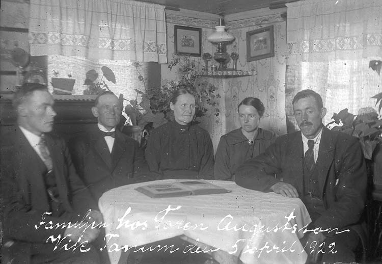Skrivet på bilden: "Familjen hos Toren Augustsson, Vik Tanum. 5 april 1922."