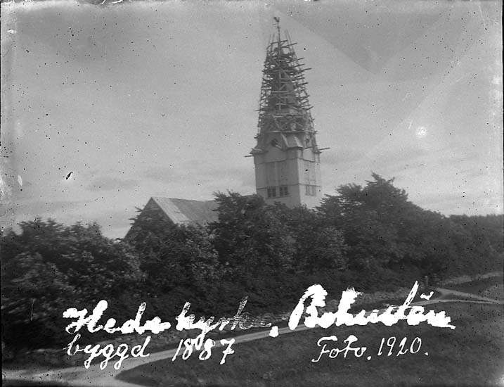 Enligt text på fotot: "Hede kyrka, Bohuslän, byggd 1887. Foto 1920".