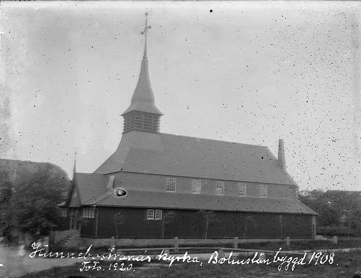 Enligt text på fotot: "Hunnebostrands kyrka, Bohuslän byggd 1908. Foto 1920".