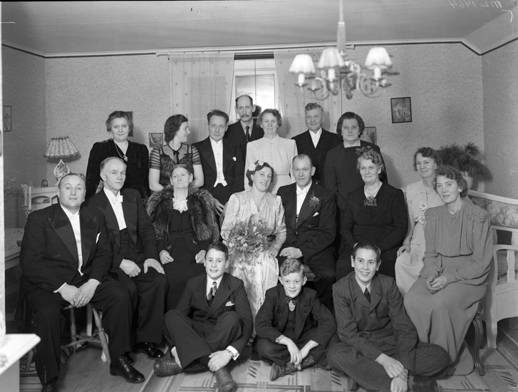 Uppgift enligt fotografen: "Gruppfoto i hem. Herr Ernst Larsson."