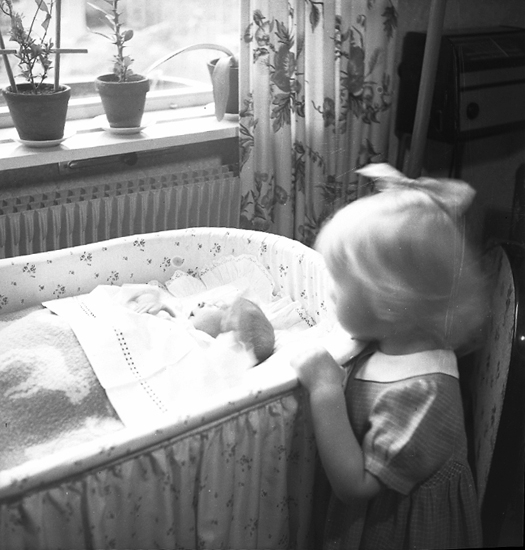 Text till bilden: "Ingrid Olsson m. 2 barn. 1946 maj".