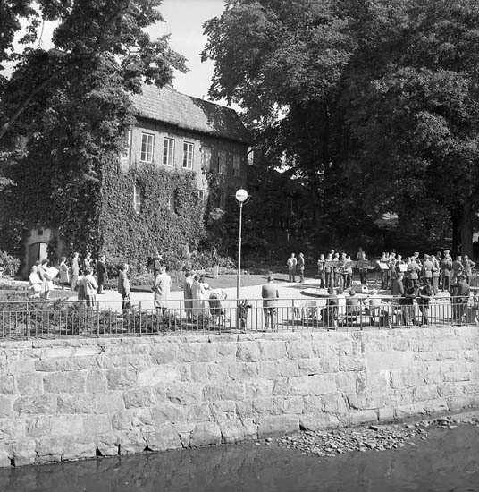 Hasselbackshuset och Bäveån, militärorkester till höger i bild.