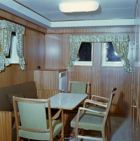 Fartygsinteriör från fartyget 133 T/T Josefina Thordén. Befälets kontor och fartygsbibliotek.