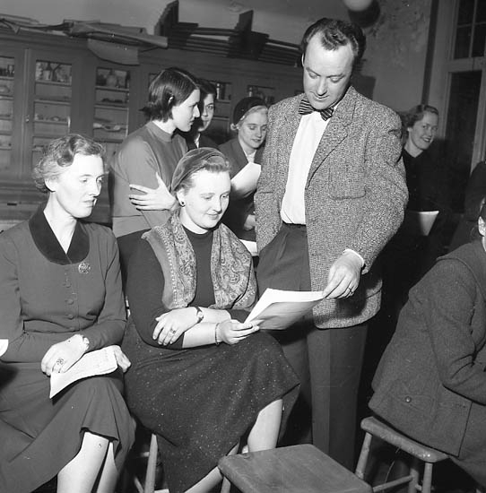 Enligt notering: "Nya kvinnliga sångkören (i flickskolan). Musikdirigent Mark de la Berg 19-3-1956".