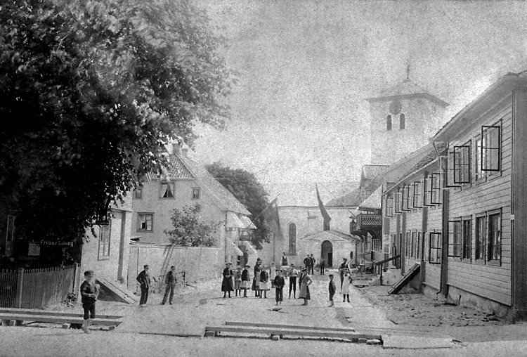 Långgatan i Marstrand med transportsläde för fästningens kanoner